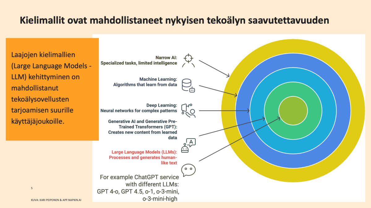 Tekoälyyn liittyy paljon teknologiaa, mutta kielimallien kehittyminen on keskeinen asia, joka on mahdollistanut nykyiset tekoälyä hyödyntävät palvelut.