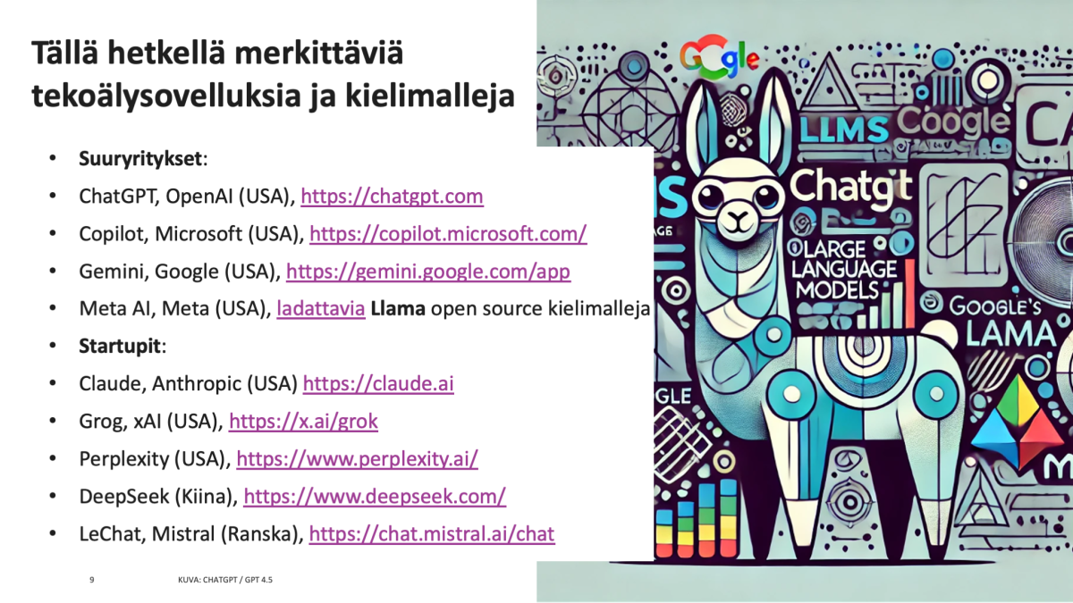Kuva 5 Merkittävimmät tekoälypalvelujen tarjoajat tällä hetkellä